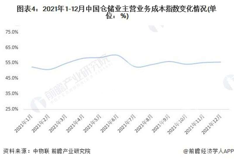 根據中國物流與采購聯(lián)合數據,2021年1-12月,中國倉儲業(yè)主營業(yè)務成本指數均值為55.3%,同比增長3.1個百分點,顯示2021年倉儲行業(yè)成本支出增速有所提升,企業(yè)經營壓力較大,倉儲行業(yè)降本增效仍需進一步夯實。